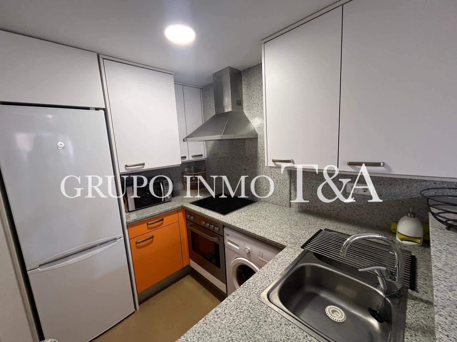 Una cocina abierta al salón-comedor, totalmente equipada, con mobiliario funcional y electrodomésticos en buen estado. La cocina se integra perfectamente en el espacio, creando un ambiente moderno, acogedor y práctico.