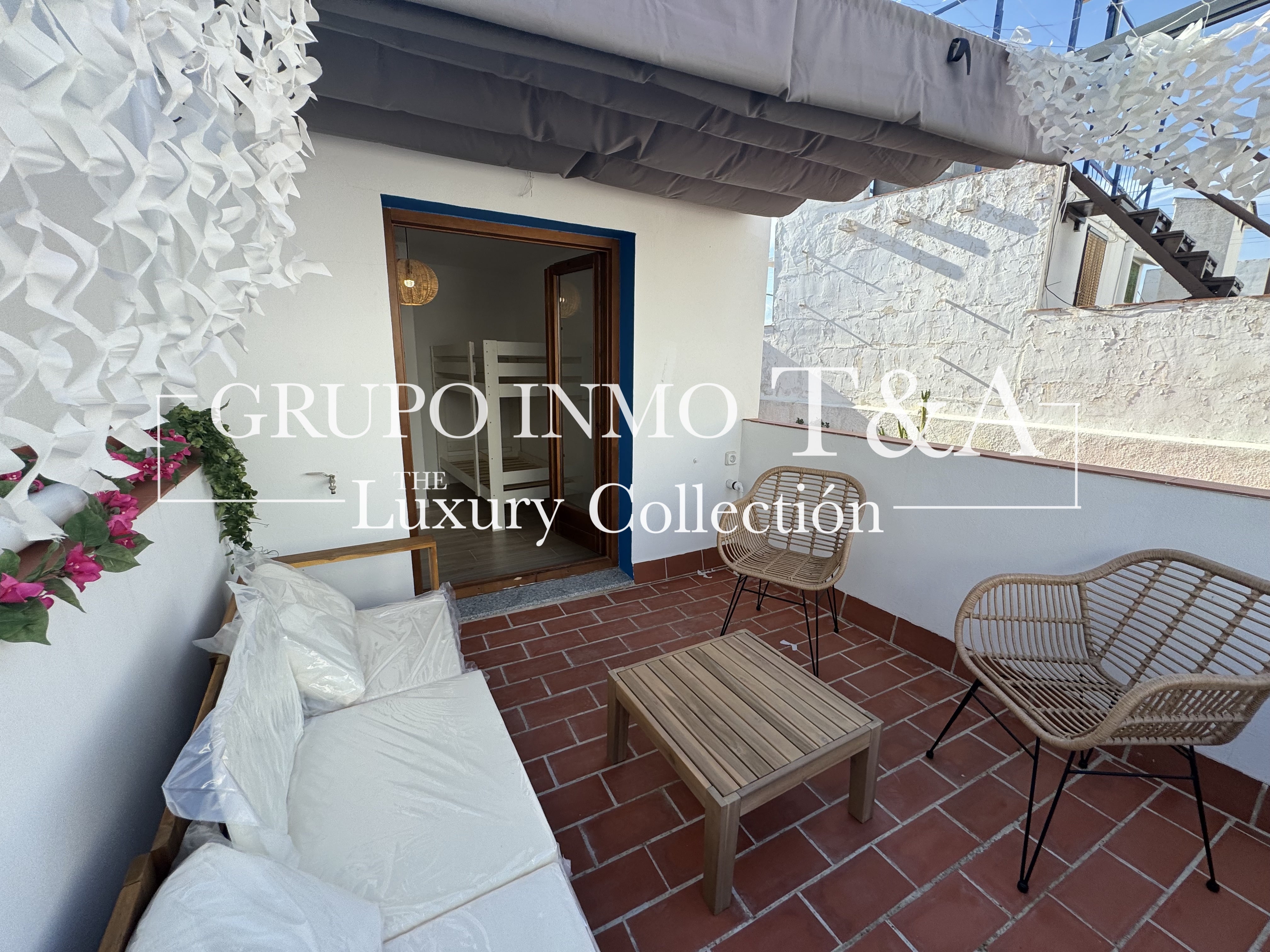 La tercera planta ofrece una acogedora estancia adicional, perfecta como dormitorio auxiliar, con espacio para una litera y acceso a una magnífica terraza tipo chill-out. Este espacio exterior, amueblado con mobiliario de exterior, invita a disfrutar de las noches de verano y las vistas al casco antiguo.