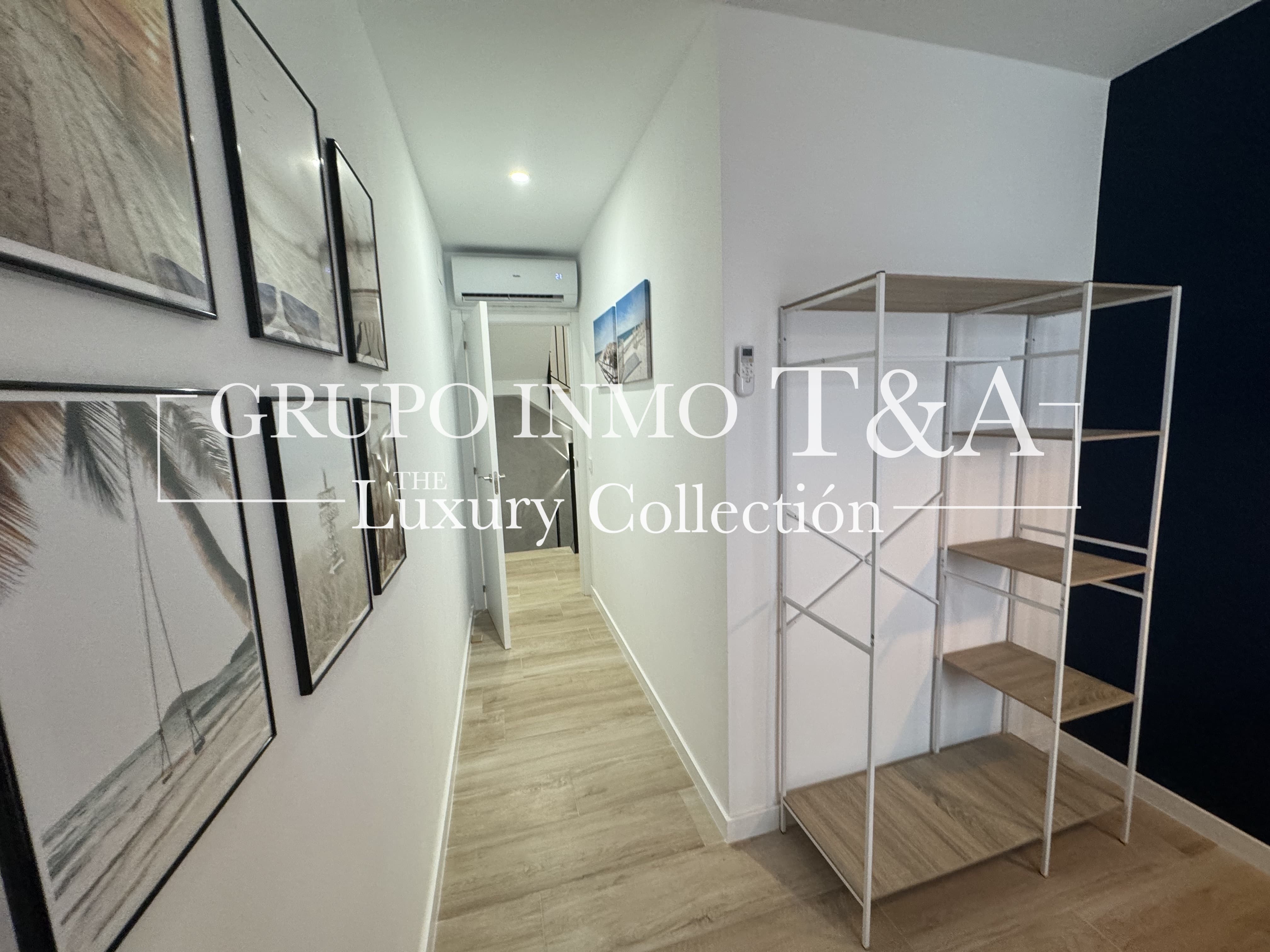 Una elegante escalera con peldaños de marmol y pasamanos de cristal nos conduce a la primera planta, donde encontramos una habitación principal decorada con un cálido estilo marinero, con acceso directo a un balcón exterior. En esta planta también se ubica un baño completo, moderno y funcional, con plato de ducha y excelentes acabados.