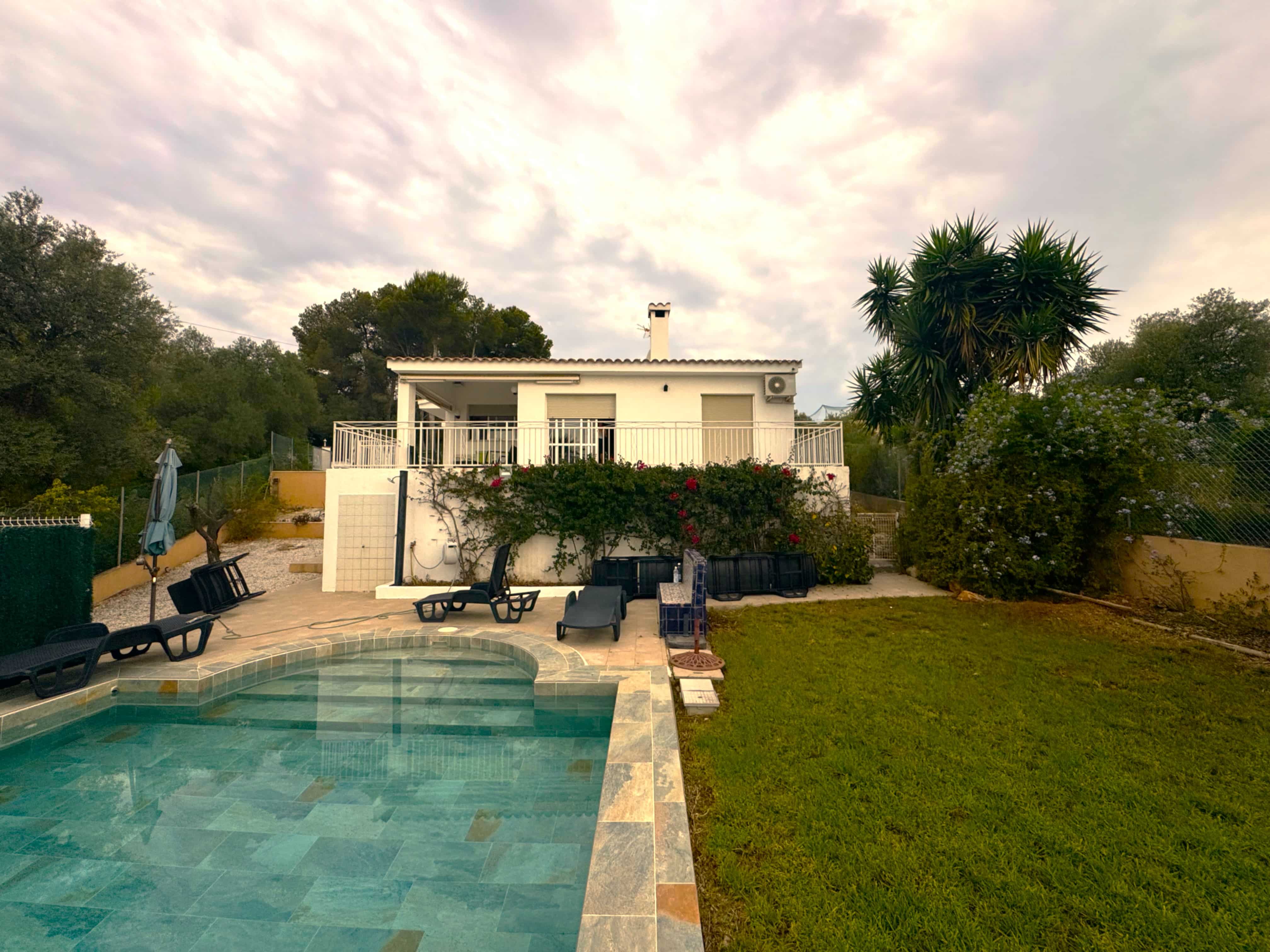 Asentada sobre una generosa parcela de 631 m², la zona exterior es un verdadero lujo privado: